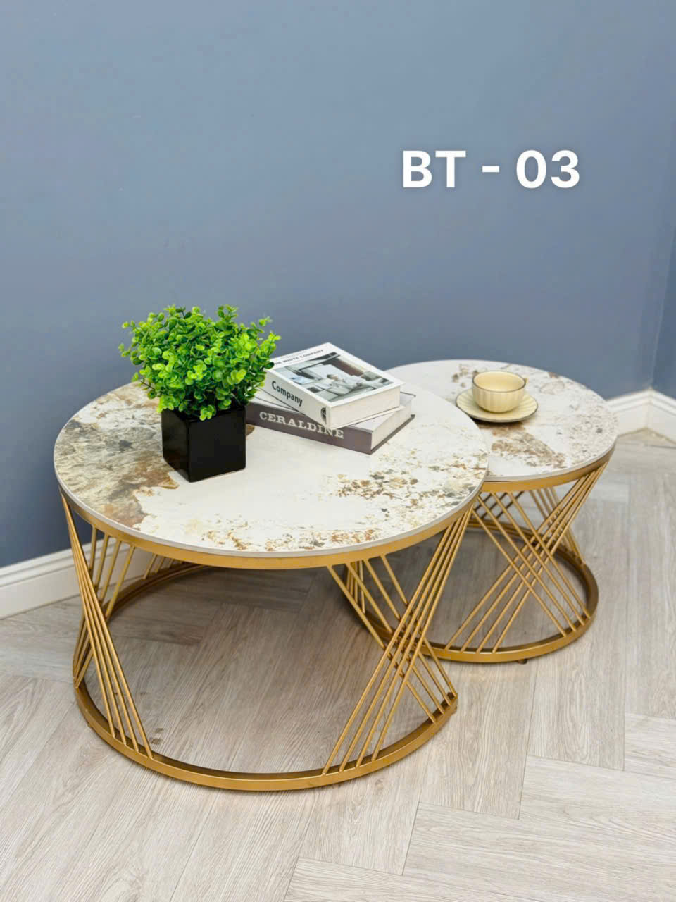 Bạn đang tìm kiếm bàn trà đôi mặt đá vừa sang trọng, vừa bền bỉ cho phòng khách của mình? Mẫu BT03MT chắc chắn là lựa chọn hoàn hảo. Với thiết kế mặt đá vân mây tự nhiên kết hợp chân sắt sơn tĩnh điện mạ vàng đẳng cấp, BT03MT không chỉ là món nội thất, mà còn là điểm nhấn nâng tầm không gian sống.