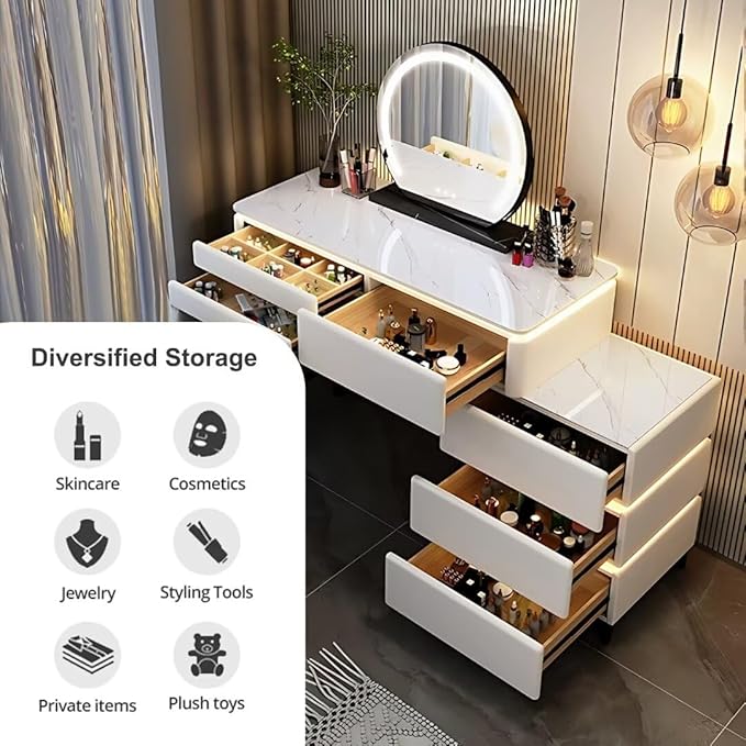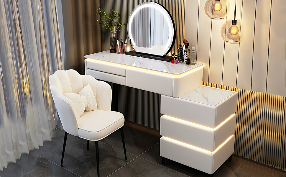 Bàn Trang Điểm Hiện Đại Kèm Ghế – Thiết Kế Sang Trọng, Đèn LED Thông Minh