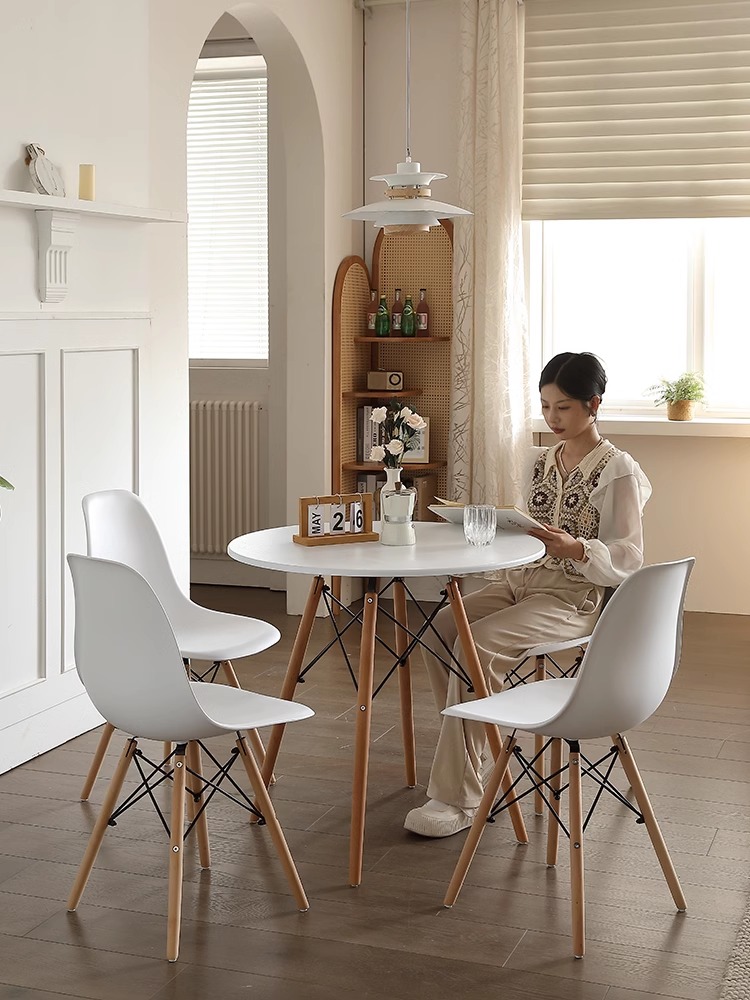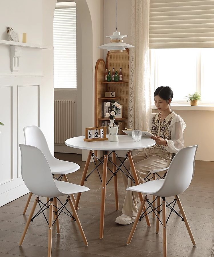 ✅ Kết hợp đẹp mắt với ghế nhựa chân gỗ như ghế Eames.