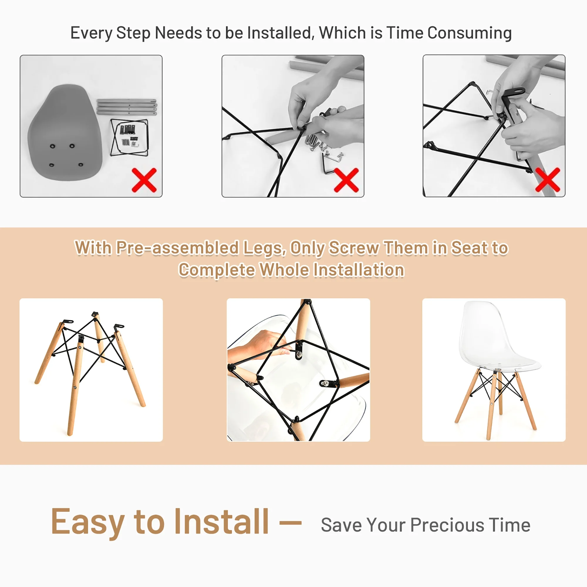 Ghế Eames Nhựa Trong Chân Gỗ CF03MT– Tối Giản Nhưng Đầy Phong Cách