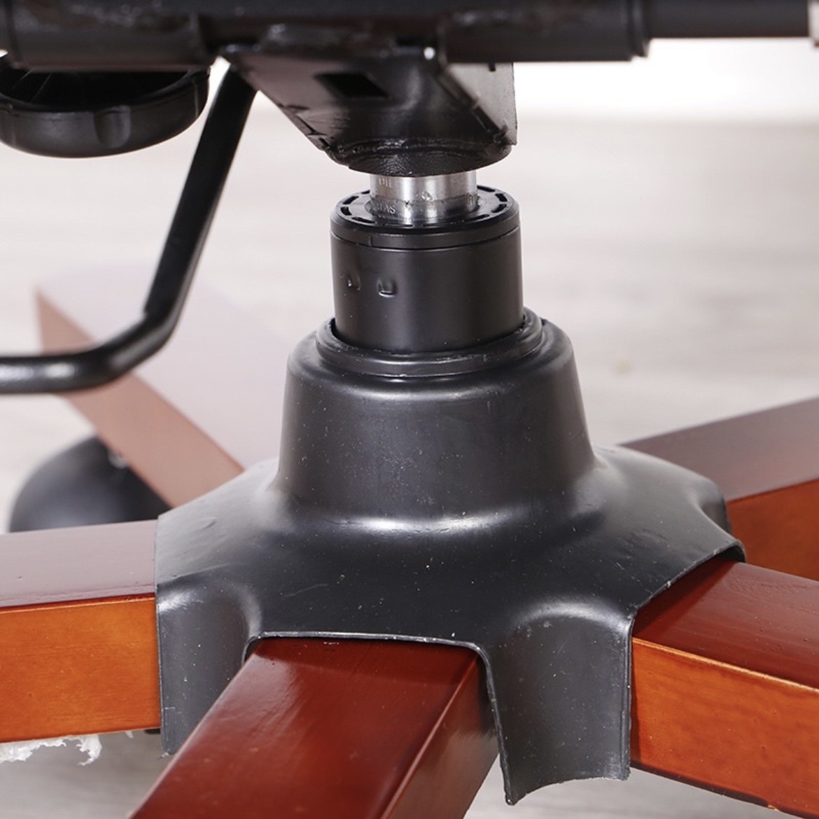 Chân ghế xoay 5 cánh tiện lợi. Chất liệu chân gỗ tự nhiên 5 cánh giằng sắt chắc chắn đã qua xử lý sơn Pu sáng bóng toát lên vẽ sang trọng