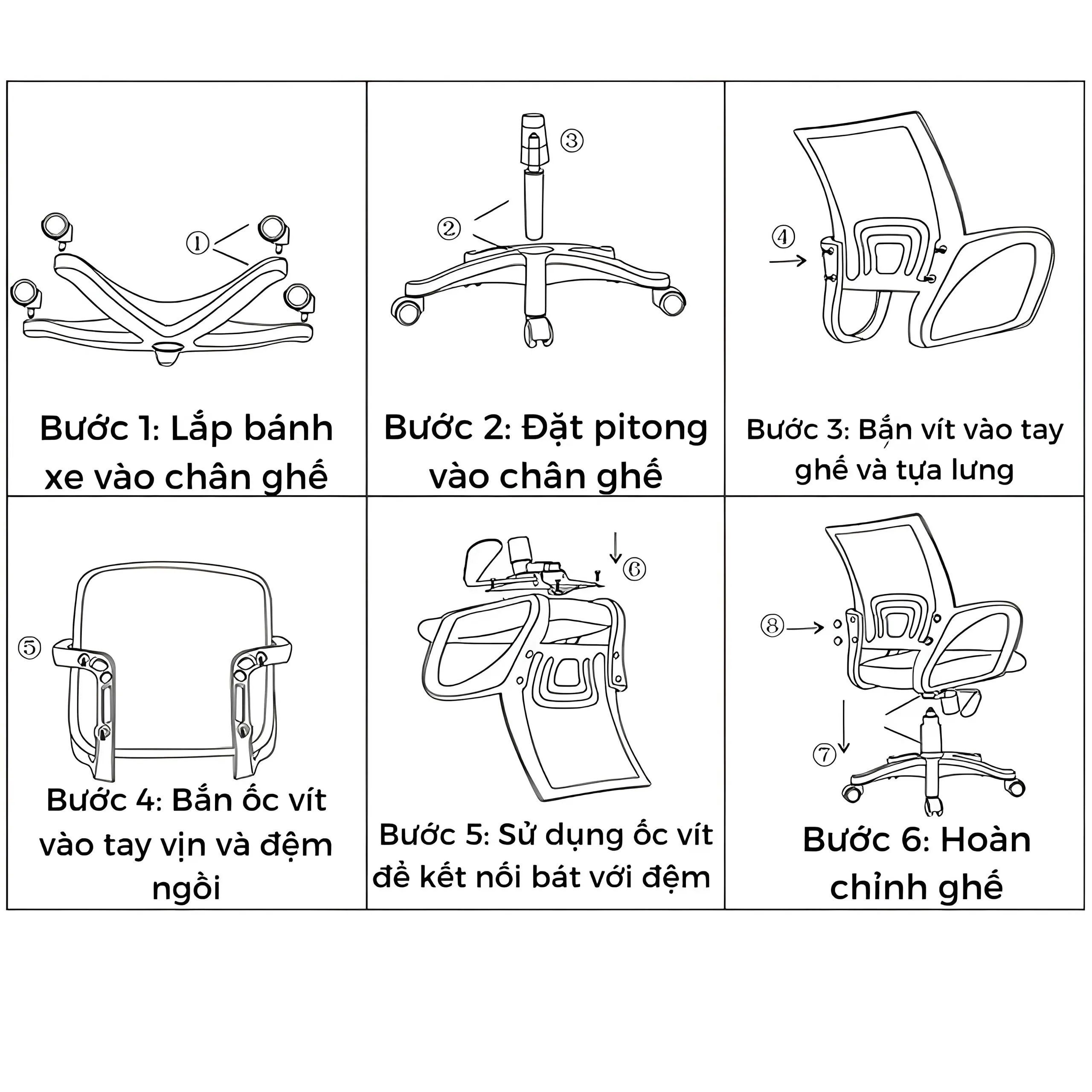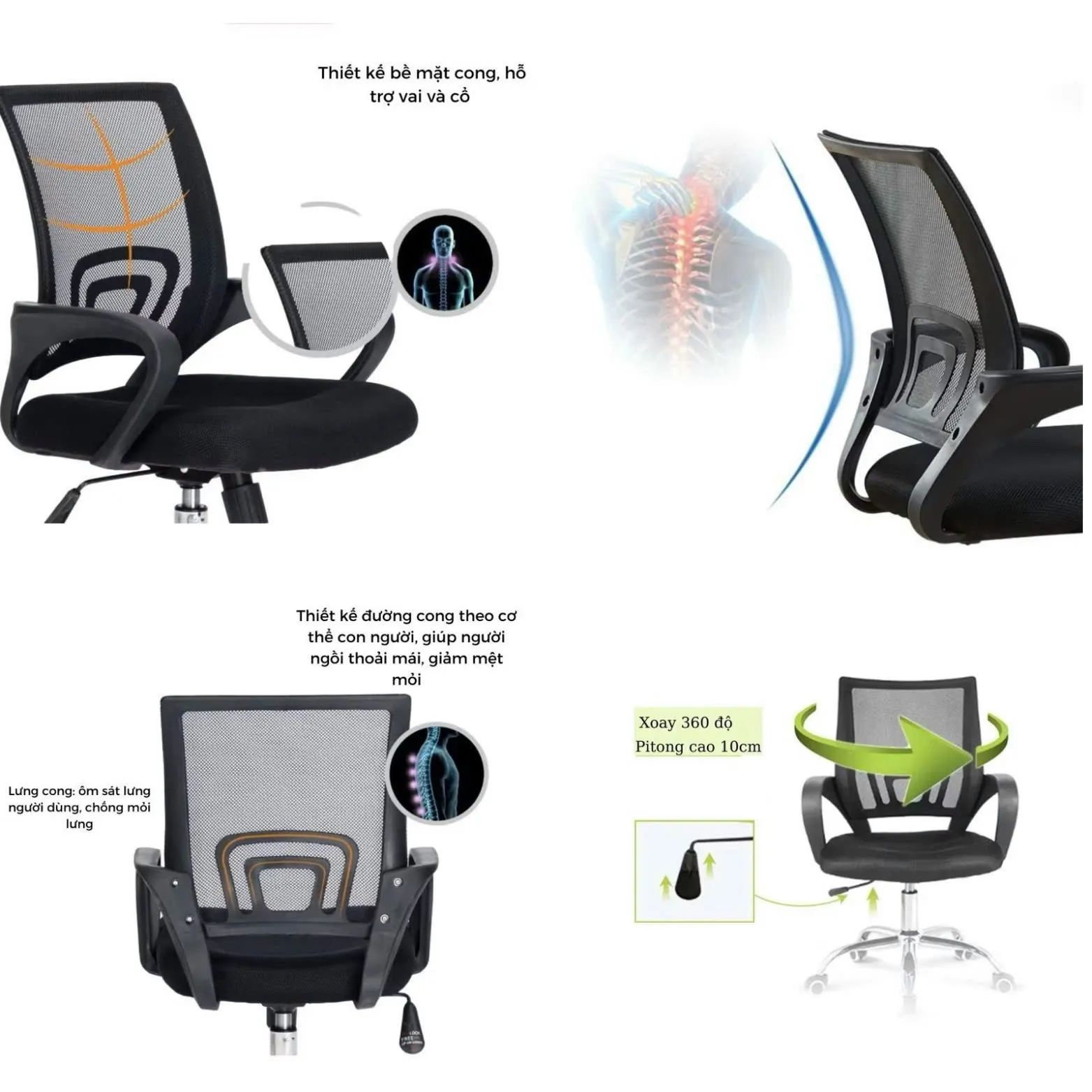 | Chất Liệu Ghế | Sắt Si, Vải Lưới, Nhựa |